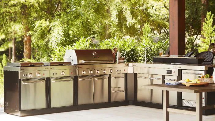 Now that your prefabricated outdoor kitchen’s plan and design are complete, it’s time to choose the equipment and amenities that will make outdoor cooking a breeze. As the focal point of your outdoor kitchen, start with a premium built-in grill. Pick a model that has the features, size, and cooking capacity that best suit your requirements.